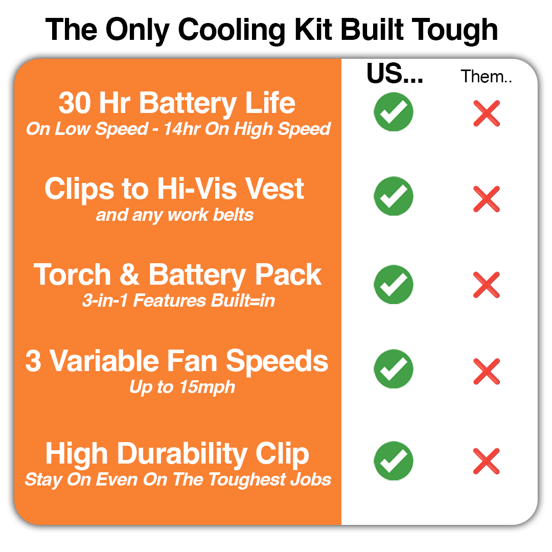 I've tried other fans and cooling equipment that don't fit right and falls off while walking. The ArcticChill stays on way better and blows air even when I'm climbing a ladder or moving equipment around the site.