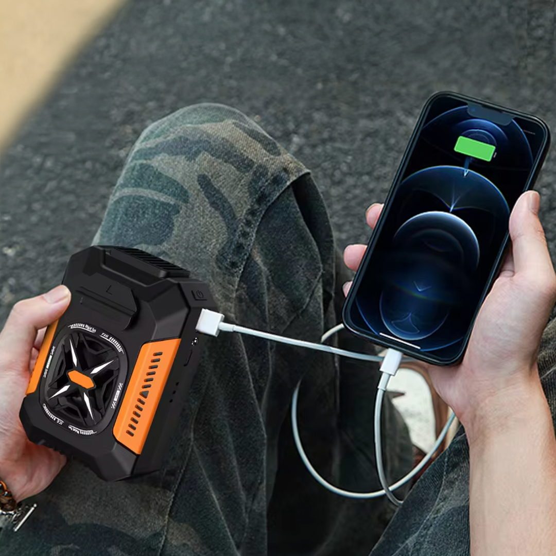 I work 10-hour days outdoors in steel-toed boots. This thing cools me off during breaks and keeps my phone charged without looking for an outlet. Best gear investment this year.