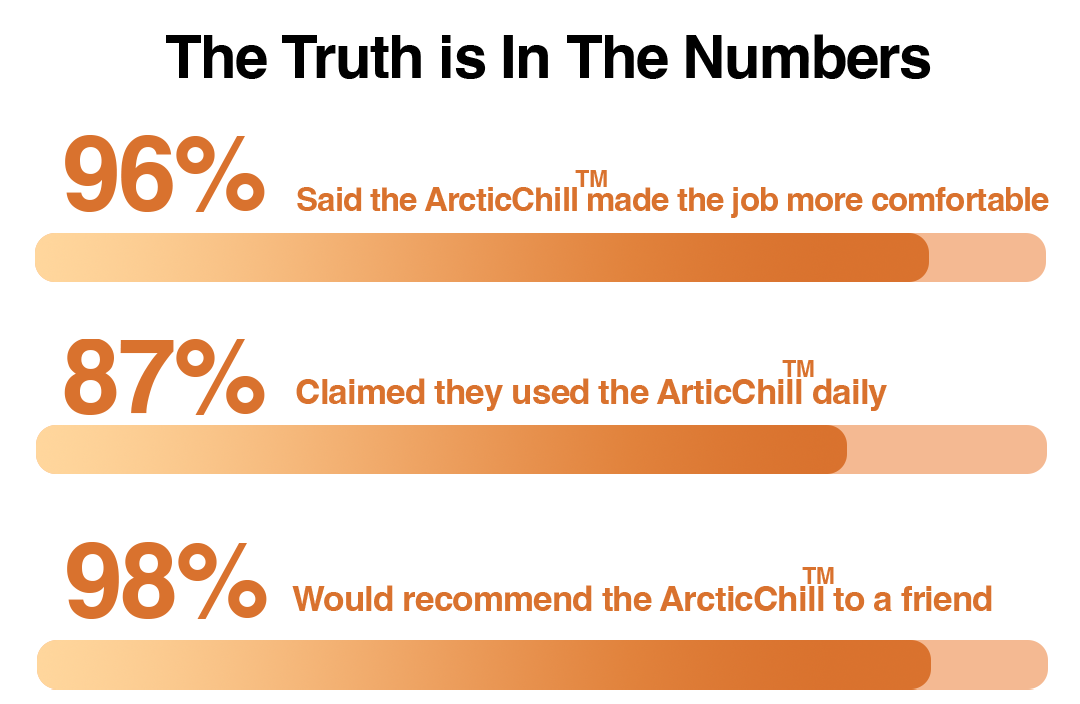 I've been working in the summer for years drenched in sweat. After finding the ArcticChill, I've sweat less, felt more cool, and my wife doesn't complain about my smell when I go home. I take it on every job I go, hasn't let me down yet!